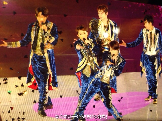 solo曲子开始之前在main舞台高处show了一段小鼓的演奏~然后边唱边从主舞台走到中间舞台,中间舞台也放着小鼓。曲子后半还有其他Jr一起站成一排,翔桑在中心敲鼓,又敲左边又敲右边还一边唱歌,眼花缭乱,帅气无比!